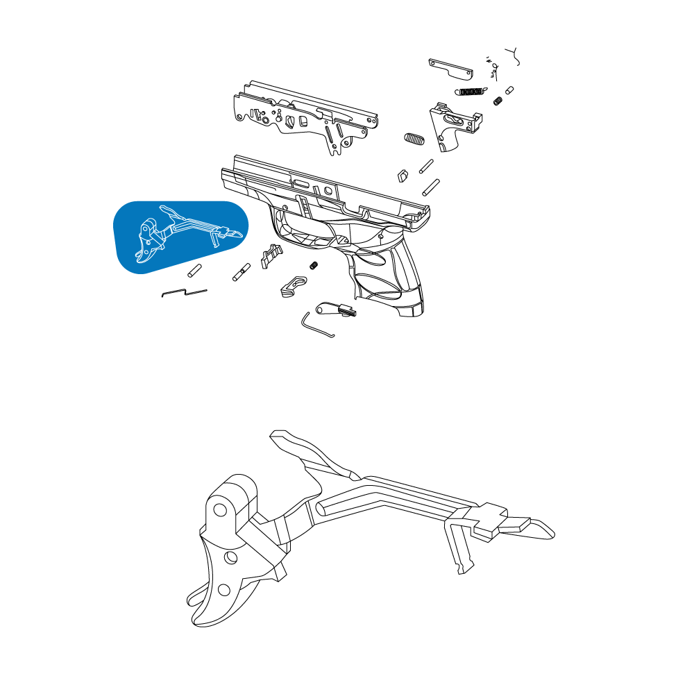 A replacement trigger assembly for the PPS M2 series of pistols